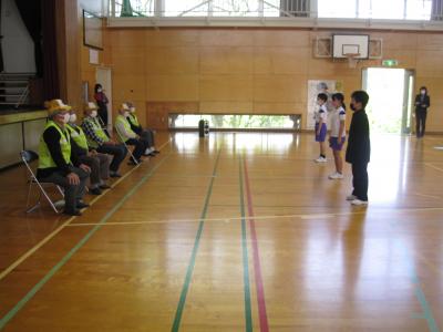 不審者が侵入した場合の暗号放送を確認し、対処の仕方を練習しました。