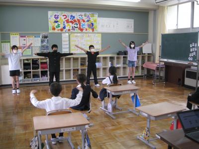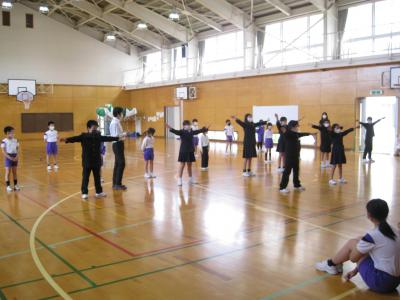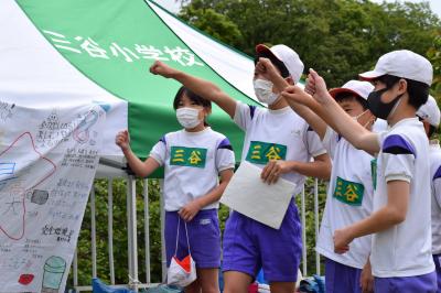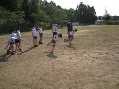 運動会に向けて、3・4年生はリレーのバトンパスの練習、6年生は応援を考える活動を行っていました。