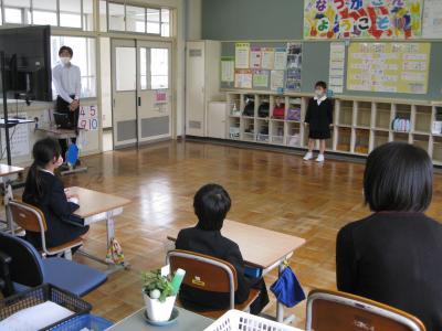 教室での春休みの話や机の移動を終え、子どもたちは元気に帰っていきました。