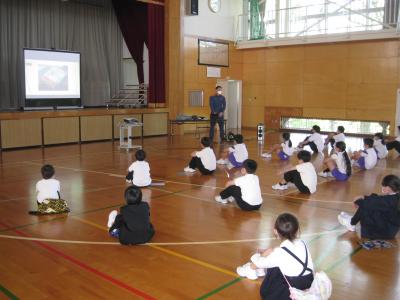 その後、体育館に集まって、警察の方のお話をお聞きしました。