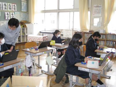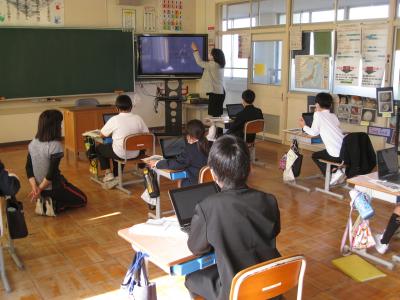 パソコンを使った学習を進め、子どもも教員もスキルアップをめざしてがんばっています。