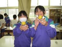 先日、教頭先生が竹の棒で柿をとり、1・2年生が受け取りました。
