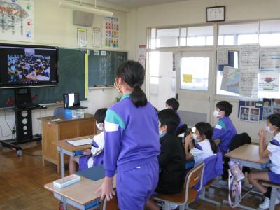 3年生は、6年生の写真をもとにクイズを出していました。6年生にとって懐かしい場面がいっぱいでした。