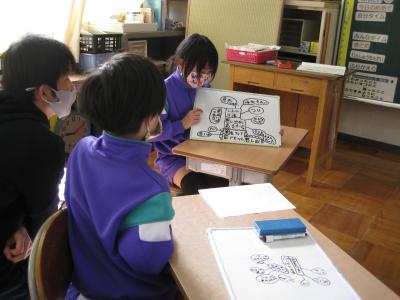 5・6年生は身を乗り出すように絵や文を見たり、良いところをほめたりして、温かく応援しながら聞いていました。