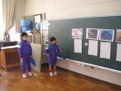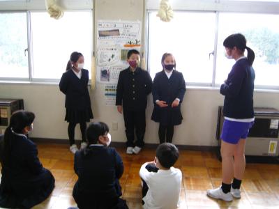 グループでの発表が終わったあとは、全体に紹介したい子を一人選んで、今回初めてリーダーを務めた4・5年生が紹介しました。