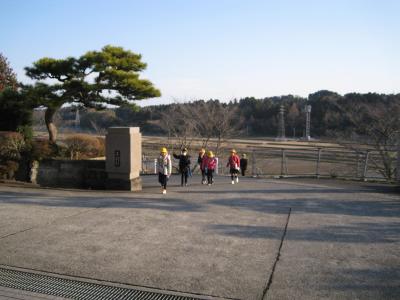 運動場の外側の方を大きく回って走り、校舎前へ向かいます。