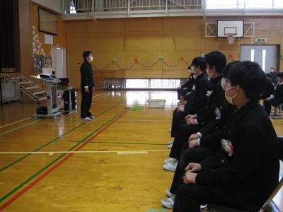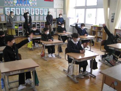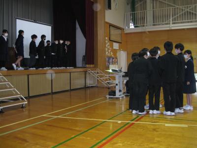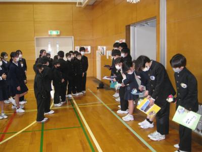 最後に、中学1年生から三谷小の6年生へのメッセージカードが渡されました。