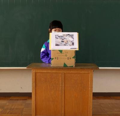教科書や自分で読んだ本から、動物が子どもをまもるために、どのような工夫をしているかをまとめ、クイズにして発表してくれました。