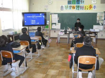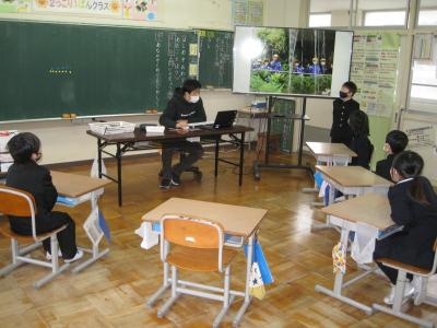 はじめに、中学生が6年生に向けて作ってくれた中学校の紹介動画をみました。