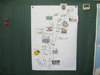 3・4年生は社会の学習で、石川県の市町について学び、すごろくでまとめました。
