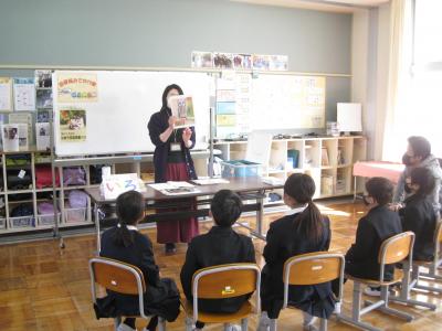 加賀市立図書館の司書さんがブックトークをしてくださる「図書館お出かけ隊」がありました。