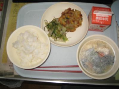 昨日は「なす入りカレー」、今日は「豆かき揚げ」が出されました。