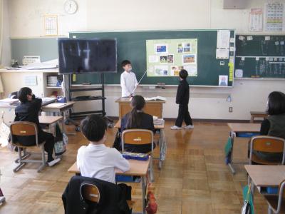 4年生は、「調べたことをほうこくしよう」という学習で、3つのグループに分かれて発表しました。