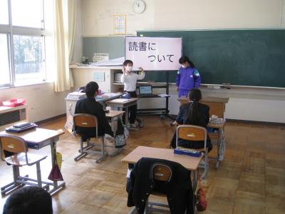 事前に3年生以上を対象に、読書、整理整頓、忘れ物についての実態調査をして、その結果から自分たちの生活をよりよくする方法について発表していました。