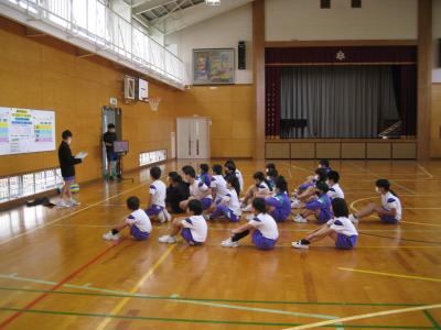 最初に体育委員が「今日もがんばりましょう」と声をかけ、最後にはそれぞれの学年のがんばりに、みんなで声援や拍手をおくり合います。