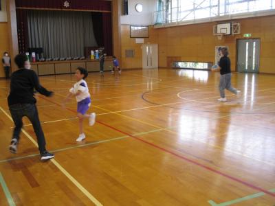 長休みに、火曜日は8の字とび、木曜日はシャトルボールに取り組んでいます。