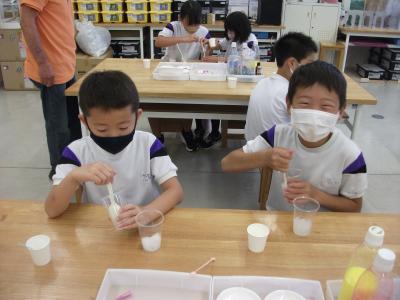 きれいな色ができるたびに「先生、見て」「こんな色になったよ」と喜んでいました。