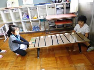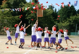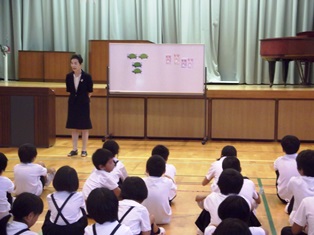 朝の会で毎日「今月の歌」を歌っています。10月の歌は「まっかな秋」です。