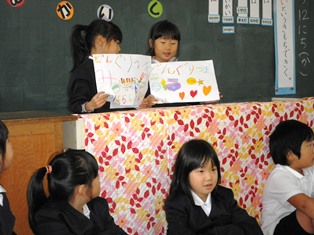 2年生の教室から、元気な歌声が聞こえてきたので覗いてみました。