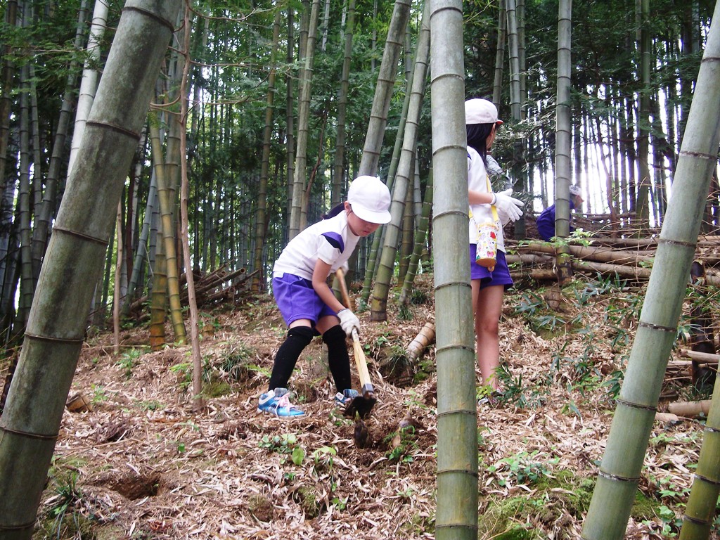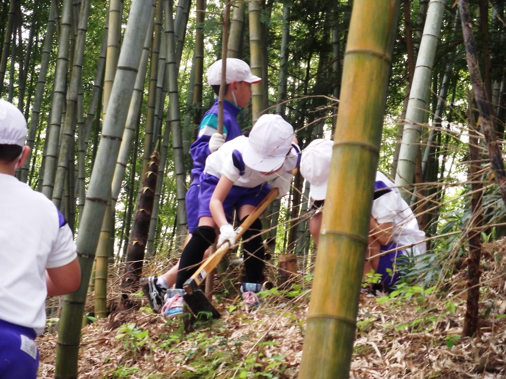 竹の子堀り 投稿日時 : 2012/05/10 校長 3・4年生が,公民館長さんの竹山で,竹の子堀り体験をしました。一人1本ずつ,家に持ち帰り家族で味わいました。学校でも,給食メニューのひじきご飯に,調理員さんが掘りたてのタケノコを混ぜて下さいました。全校で食べました。おいしさがさらにアップしました。有難うござました。 今後も,総合的な学習として,継続して竹の成長を観察したりしていきます。 0 {{options.likeCount}} {{options.likeCount}}