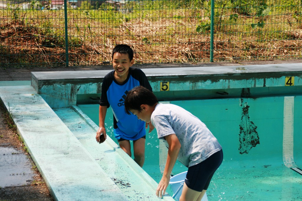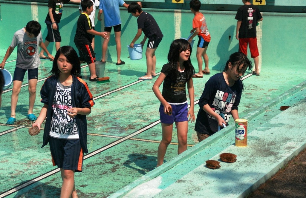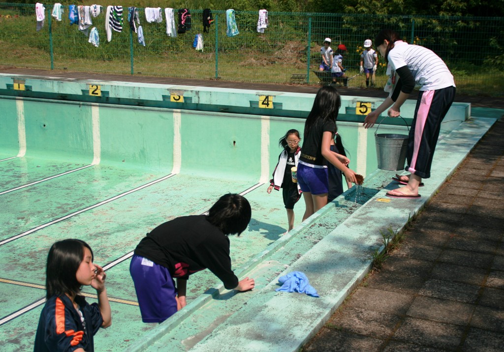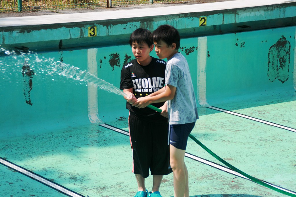 水泳シーズンに向けて,プールの補修工事を今日から開始しました。