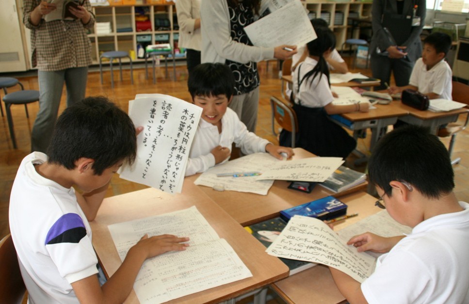 2年生国語「スイミー」の授業研究会がありました。レオレオニさんの「スイミー」のお話は2年生は大好きです。仲間と別れ一人ぼっちで悲しい場面や,珍しい物をみて元気を取り戻す場面など,それぞれが,一番心に残った場面のスイミーに,語りかけ互いの意見を交流しました。