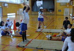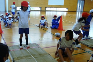 たくさんの児童が参加しました       棒バランス何分出来るかな?