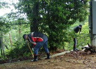 猛暑日の今日,運動場に除草剤散布をして頂きました。春に散布したにもかかわらず3ヶ月でもう雑草が青々として来ました。学校からお願いしなくても,公民館長さんと地区の方が,いつも気にかけて作業に来てくださいます。こうした地域の皆様方のご支援によって三谷小学校が支えられていることに,いつも感謝しています。暑い中大変ありがとうございます。