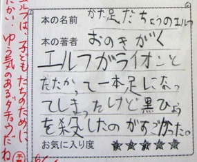 休み時間に,読書ノートに一言感想を書いて校長室に持ってきてくれました。嬉しいです。