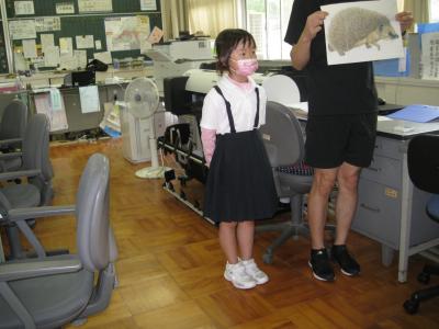 ハリネズミとエリマキトカゲの身の守り方について、暗唱して発表してくれました。