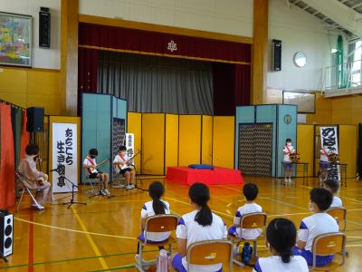2年生と6年生を前に、始めるまでは緊張気味でしたが、とても上手にできました。