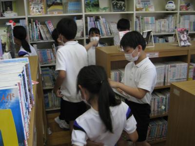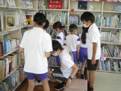 図書室の本の中から、学年に合った本を司書の先生に選んでもらい、1・2年生用にはピンク、3・4年生用には黄色のしおりを図書委員が挟みました。