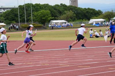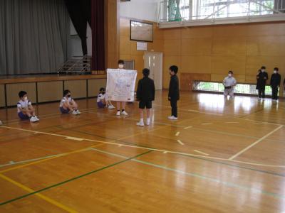 運動会に向けて、3・4年生はリレーのバトンパスの練習、6年生は応援を考える活動を行っていました。