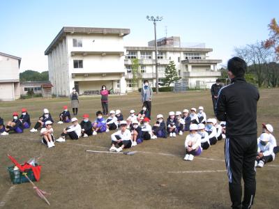 ピッチャーはゆっくりとした球を転がすのがルールです。少しでも速い球がいくと、すぐに教師が止めてやり直すので、みんなキックすることができます。