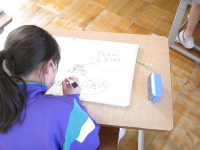 グループでの発表が終わったあとは、全体に紹介したい子を一人選んで、今回初めてリーダーを務めた4・5年生が紹介しました。