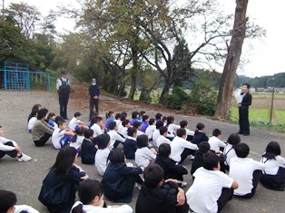 不審者想定の避難訓練 投稿日時 : 2013/10/29 校長 今回は不審者侵入の想定で実施しました。 正面玄関は、日頃施錠してあります。今日は運動場側の戸が開いていて不審者が侵入した想定でした。 公民館長さん扮した不審者は、核心の演技で教頭ともみ合いました。 その姿は、5.6年生だけは見ましたが、低学年は別の階段から、ただちに逃げました。 子どもたちは、先生の指示に従い、静かに素早く、下駐車場へ避難しました。 熊坂駐在所長さんからお話を聞き、登下校時にも不審者に合わないよう 命を守る合言葉「いかのおすし」を確認しました。 Tweet {{options.likeCount}} {{options.likeCount}} 0 コメント