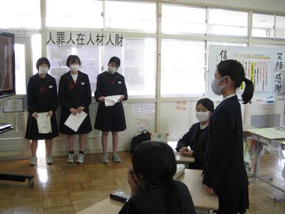 最後に中学生から、「錦城中学校は日本一温かい学校を目指してがんばっています。私たちがいますから、安心して錦城中学校に来てください。」という心強い言葉をもらいました。