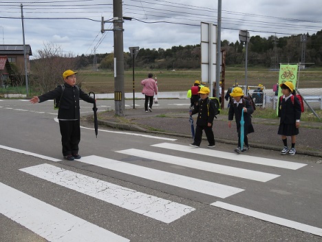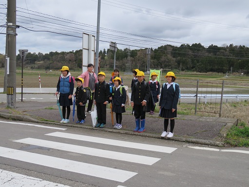 集団登校の練習 投稿日時 : 2017/04/07 校長 4限目に地区別集会が行われました。上級生が、1年教室へ新入生を迎えに行き地区別に集まって、新年度スタートにあたっての交通安全についての約束などを確認しました。下校時には、グループごとに横断歩道を渡る練習を行い、集団登校の練習をしました。班長が、安全を確認してグループのみんなを渡した後、全員で大きな声で「ありがとうございました」のあいさつをします。安全の意識を高め、ドライバーさんへの感謝の気持ちをもつことにつながる行動だと思います。1年生の子どもたちは、まだまだ通学路を歩くのは大変かと思いますが、安全に気をつけて登校しましょう。・班長の「渡れ」の号令で、全員がさっと横断歩道を渡ります。・渡り終わったら、運転手に聞こえるような大きな声で「ありがとう」を伝えます。 Tweet {{options.likeCount}} {{options.likeCount}} 0 コメント
