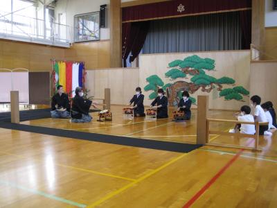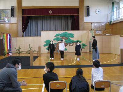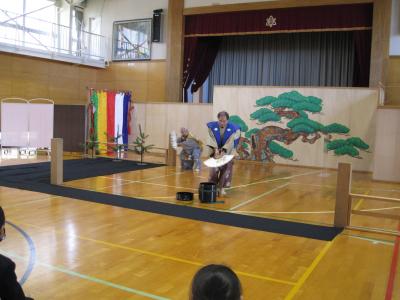 県民移動能 投稿日時 : 2021/10/29 校長 10月26日(火)県民移動能が行われました。 県の文化振興課の事業で、金沢能楽会の能楽師の方が講演をしに来てくださいました。 3年生以上が、すぐ目の前で能や狂言、舞を鑑賞しました。 狂言「ぶす」 面白い動きや台詞を楽しんでいました 半能「熊坂」 楽器の演奏や能面をつける体験もさせていただきました。 太鼓の体験 能面をつけると視野がとても狭いそうです 最後に6年生が感想とお礼を伝えました。 とても貴重な体験で、感想文からも、子どもたちが日本の伝統文化の素晴らしさを感じ取っていたことが分かりました。 Tweet {{options.likeCount}} {{options.likeCount}} 0 コメント
