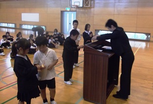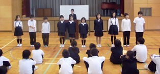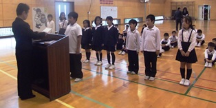 10月の全校集会 投稿日時 : 2013/10/25 校長 まず、後期児童会役員、学級役員の任命式をしました。ひとり一人が、任命にあたって、みんなの前で決意を述べました。前期同様、自分の担当した役割を、責任を持って担当し三谷小学校をよくしていこうという意気込みが伝わってきました。 次に、読書感想文など各種の表彰式を行いました。名前を呼ばれたら、大きな声で返事をして立派な態度で、表彰状を受け取っていました。 読書ノートの表彰では、1年生が大変意欲的に読書をした子が多く出ました。そして嬉しそうに特製しおりを受け取っていました。低学年の時から、進んで読書をする習慣をつけておくことは、高学年になって、長編の物語を読破できる力につながっていくことと信じています。 Tweet {{options.likeCount}} {{options.likeCount}} 0 コメント