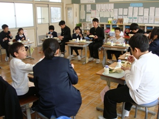 ふれあい給食 嬉しいな 投稿日時 : 2014/03/04 校長 もうすぐ卒業する6年生が、下学年の教室に行って一緒に給食を食べる「ふれあい給食」週間が始まりました。 昨日は、3月3日でひな祭りメニューでした。 2年生の横に6年生が並んで一緒に給食を頂きました。 いつもと違う雰囲気に初めは戸惑っていた2年生も すぐに打ち解けて6年生と会話しながら給食を食べていました。 Tweet {{options.likeCount}} {{options.likeCount}} 0 コメント