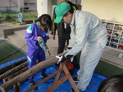 4年生 しいたけ食菌 投稿日時 : 2018/12/06 校長 11月29日(木)に4年生の子どもたちが「しいたけ食菌」を体験しました。5年生になったら、「みどりの少年団」に入団することになるのですが、それに先だっての取組でした。当日は石川県加賀農林総合事務所や総合研究センター、地域の方が7名おいで下さいました。4年生の4人の子どもたちは、「みどりの少年団」についての話を聞いた後、手取り足取り教えていただきながら、原木に穴を空けたり、菌を植え付けたりしました。どの子も意欲的に楽しく活動することができました。今年は、人数が少なかったので、1本の原木にたくさんの菌を植え付けたので、来年にもしいたけが出るそうです。たくさんの方々にお世話いただき、本当に感謝しております。 Tweet {{options.likeCount}} {{options.likeCount}} 0 コメント