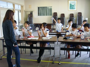 楽しい外国語活動 投稿日時 : 2013/10/30 校長 5,6年生は、外国語活動をしています。 ALTには、外国人講師と日本人講師の二人が交代で指導に来てくださいます。 今日は、5年生は、アルファベットのカードを切って それを使って、ゲームをして英語に親しんでいました。 6年生は模型の時計を使い、ALTの先生の英語が言った時刻を 正しく聞き取れたか針を動かす活動を繰り返ししていました。 Tweet {{options.likeCount}} {{options.likeCount}} 0 コメント