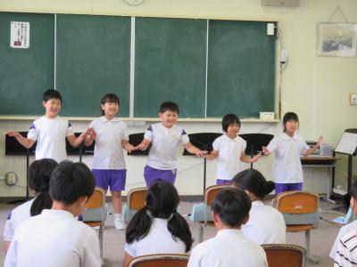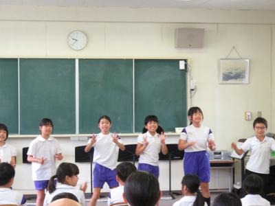 三谷音楽会♬ みんなにサチ♡をとどけました! 投稿日時 : 07/16 三谷小 7月16日 1・2年、3・4年、5・6年それぞれが、音楽の授業で学習した曲を歌ったり踊ったり演奏したりして、おうちの方や町の方に音楽を楽しんでいただきました。いっしょうけんめいに発表する三谷っ子に元気をもらいました。 1・2年生は、歌・鍵盤ハーモニカ 3・4年生は、歌・替え歌・おどり・リコーダー 5・6年生は、頭声で斉唱・ハンドベル(和音)・リコーダー・ボディーパーカッション +お笑いちょこっと Tweet {{options.likeCount}} {{options.likeCount}} 0 コメント