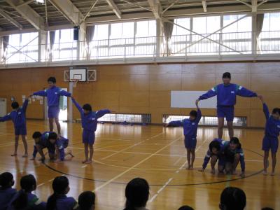 5・6年生は「カイト」の曲に合わせて、組体操を披露してくれました。