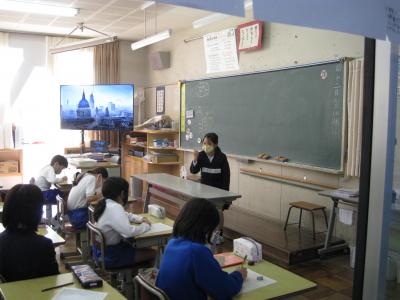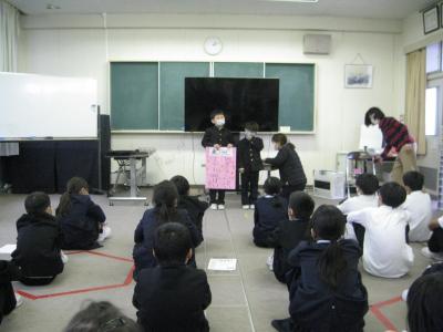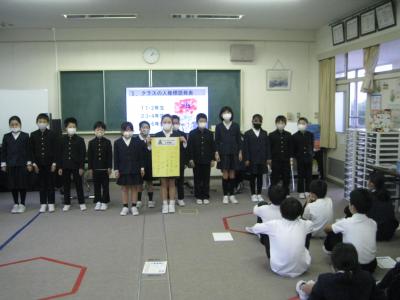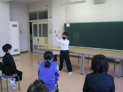 5・6年生が「見知らぬ町探検」の内容をまとめて、1~4年生に発表しました。
