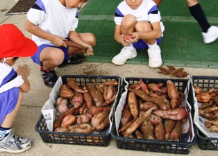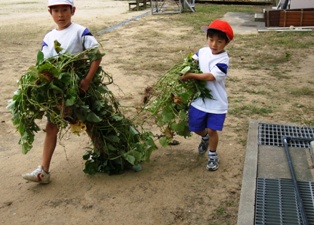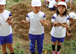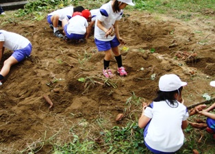 収穫の秋 投稿日時 : 2012/10/19 校長 6月に植えたさつまいもの苗が収穫を迎えました。1.2年生が一緒に芋掘りをしました。畑の土から,次々に真っ赤なさつまいもが出てきてみんな大喜びでした。さつまいもは,どうして食べるのかな?生活科で,おいしい食べ方を考えて調理する予定です。 ほら,お芋が掘れたよ よいしょ,芋のツルは,捨てよう うわあ,こんなにたくさんとれたよ まだ,残ってないかな? 0 {{options.likeCount}} {{options.likeCount}}