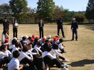 不審者対応避難訓練 投稿日時 : 2012/10/23 校長 学校に不審者が侵入した想定で,第2回避難訓練をしました。職員が不審者とさすまたを使って対峙している間に,放送で児童は速やかに避難しました。1学期の火災の避難訓練で「おはしも」の約束を指導してあったので,静かに素早く避難完了しました。駐在所の巡査部長さんからのお話に引き続き,私からは,学校外で,不審者に出会った時の約束「いかのおすし」の合言葉を指導しました。 いか・・・・知らない人についていかない の・・・・・・他の人の車に乗らない お・・・・・・大声を出す す・・・・・・すぐ逃げる し・・・・・・何かあったら知らせる 0 {{options.likeCount}} {{options.likeCount}}