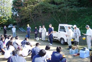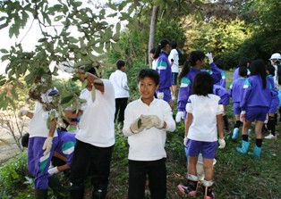 高校生とエコプロジェクト 投稿日時 : 2012/10/24 校長 大聖寺高校のSEPやボランティア部,ソロプチミストの皆さんなど約50名が,5.6年生とともに,グランド斜面の松ノ木伐採や,苗用にするどんぐりの実拾いなどをしました。10本ほどある松の木が,次々と松クイ虫に侵され,枯れてしまいました。 専門家から,カミキリムシによる松枯れ病の原因などの説明を聞き,環境を守るため自分達ができることをしようと,みんなで活動しました。 0 {{options.likeCount}} {{options.likeCount}}