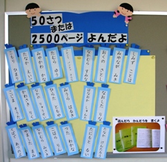読書大好き三谷っ子 投稿日時 : 2012/10/24 校長 4月から,1冊に当たり,100冊分の読書記録が記入できる「読書ノート」を全校児童に持たせています。低学年が次々と2冊目の読書ノートに進んでいます。その頑張りを認めるため,廊下に達成者の栞を掲示しました。名前がどんどん増え,読書が大好きな三谷っ子になって欲しいです。 廊下のあちこちに,本を展示し,学校中を図書館に 0 {{options.likeCount}} {{options.likeCount}}